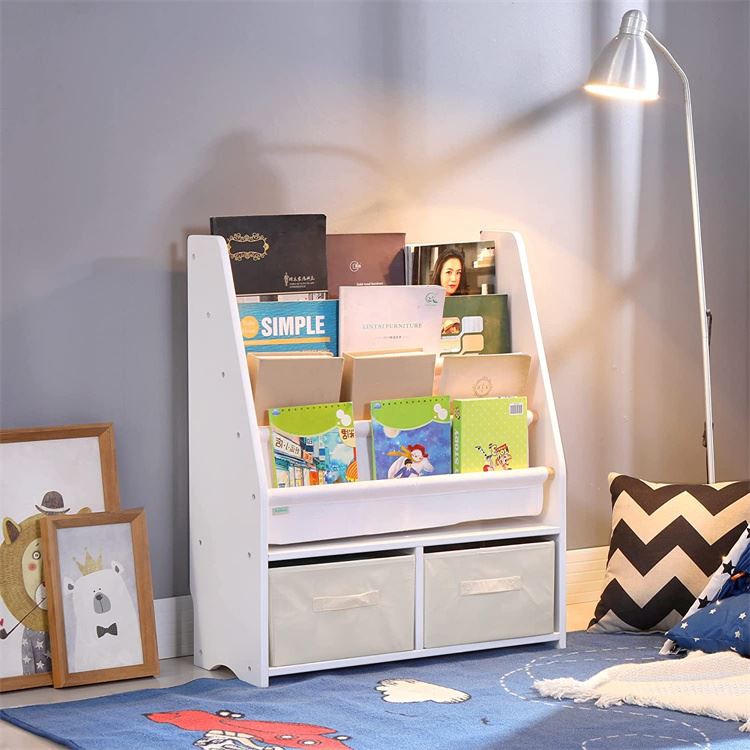 Plassbesparende design og maksimal lagringsplass, kan oppbevare et stort antall bøker, blader, leker osv. Bøker kan vises foran eller bak i stedet for ryggraden, noe som gjør det enkelt for barn å velge bøker selv. Fremmer organisering og leseferdigheter for jenter og gutter fra 3 år og oppover. Robust trekonstruksjonsdesign er lett å montere og rengjøre.